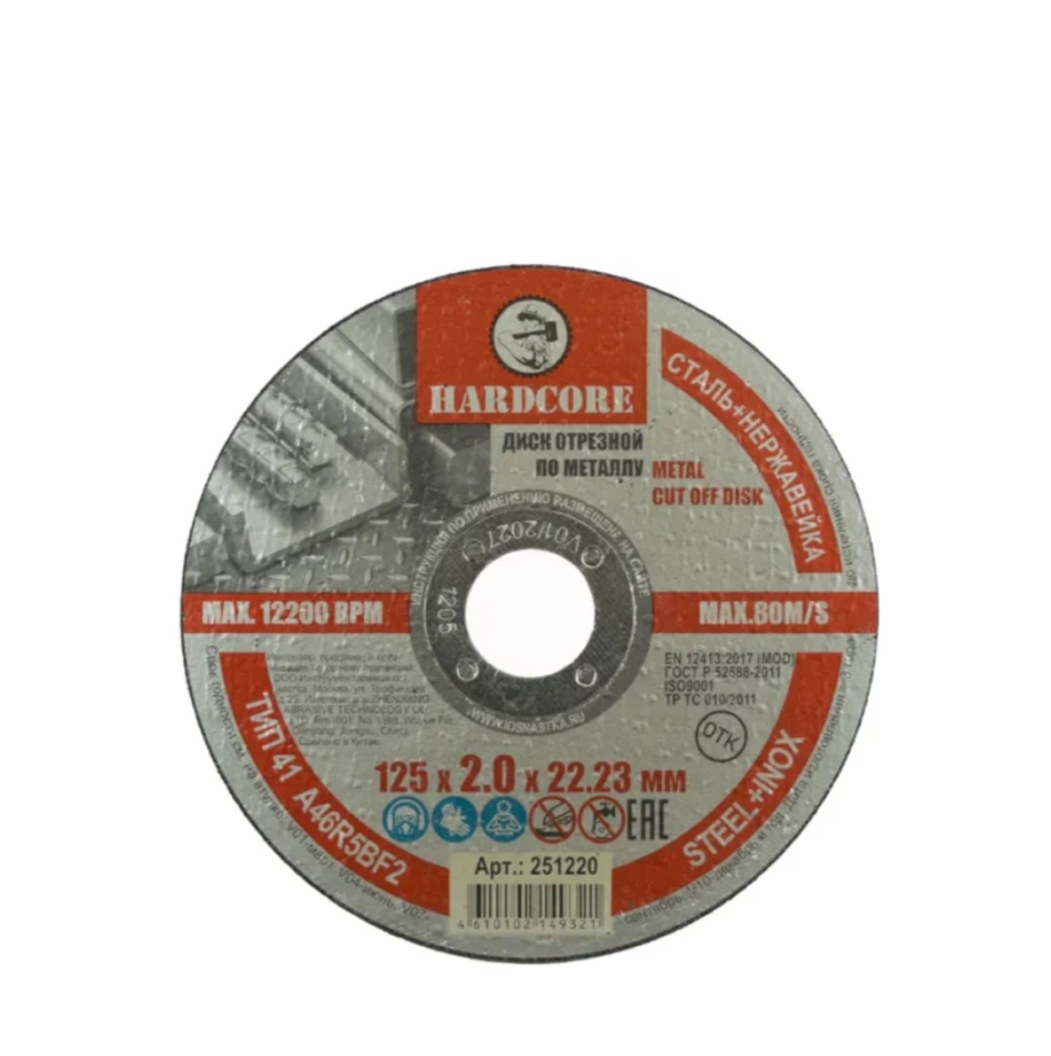 Диск отрезной по металлу, нерж. стали 125х2,0х22,23мм "Hardcore"