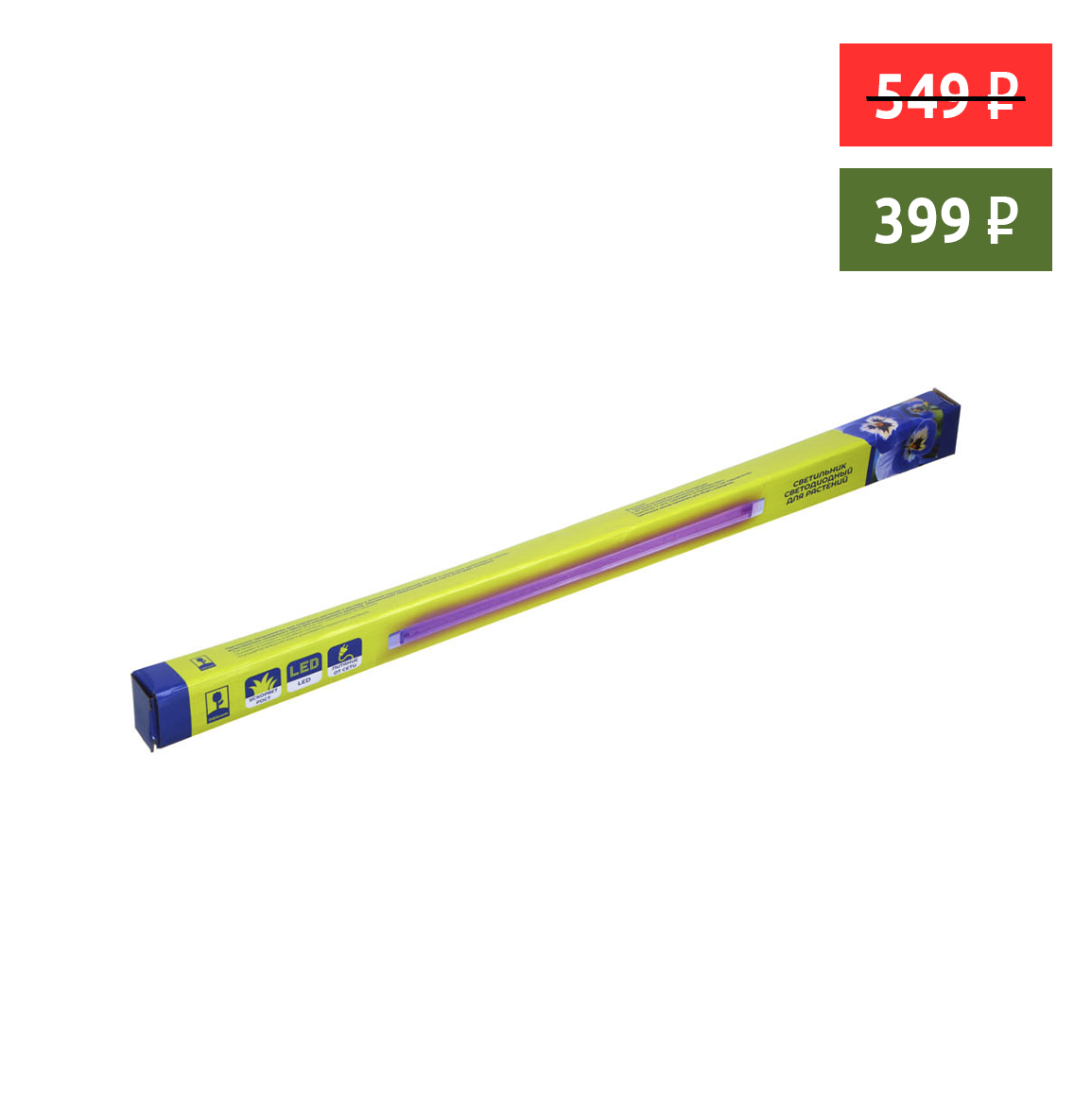 INBLOOM Светильник светодиодный для растений 87х2х3см, 45 LED, фиолетовый, 14Вт, 220В, РС, металл