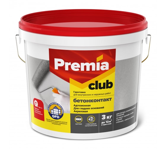 Грунтовка PREMIA CLUB БЕТОНКОНТАКТ адгезионная, ведро 3кг